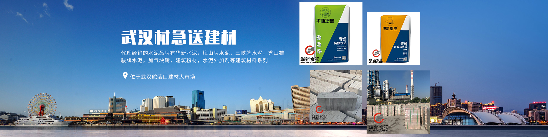 武漢材急送建材有限公司位于武漢舵落口建材大市場(chǎng),是一家專業(yè)從事水泥批發(fā),水泥外加劑,建筑粉材,加氣塊磚等建筑材料經(jīng)銷代理商,代理經(jīng)銷的水泥品牌有華新水泥,梅山牌水泥,三峽牌水泥,秀山雄駿牌水泥,加氣塊磚,建筑粉材,水泥外加劑等建筑材料系列。 武漢材急送建材有限公司成立于2016年,在武漢舵落口建材大市場(chǎng)擁有200平方米門面用于產(chǎn)品展示經(jīng)營(yíng),1000多平方米倉(cāng)庫(kù)隨時(shí)庫(kù)存各品牌水泥300多噸。